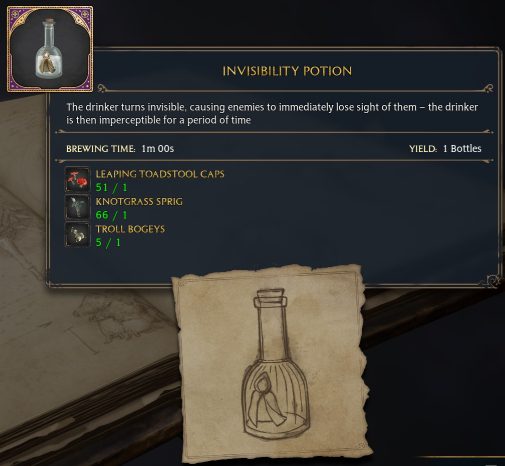 ผู้ดื่มจะล่องหน ทำให้ศัตรูมองไม่เห็นในทันที – ผู้ดื่มจะล่องหนไประยะเวลาหนึ่ง