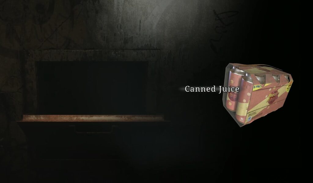 • ในห้องนั้น จะมีทางให้คลานเข้าไปจะเป็นห้องซักรีด มีที่ทิ้งขยะอยู่ ข้างโต๊ะ จะพบกระป๋องน้ำแอปเปิ้ลอยู่ 1 แพ็ค (Canned Juice)