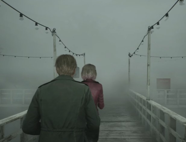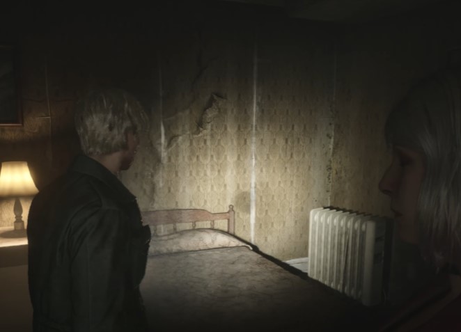 ระหว่างทางจะเจอประตูทางออกโรงแรมอีกฝั่ง ที่มาเรียต้องการทะลุผ่านไป ทั้งคู่พบว่ามันล็อก ระหว่างนี้ มาเรียจะเอ่ยว่า แปลกใจที่มันล็อกอยู่ เจมส์เลยถามว่าทำไมถึงแปลกใจ มาเรียไม่ตอบ แต่เลี่ยงพูดให้หาทางอื่นแทน